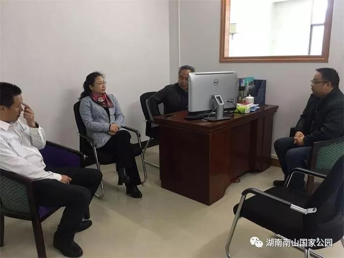 【图为听取南山风景名胜区管理处项目工作情况汇报】