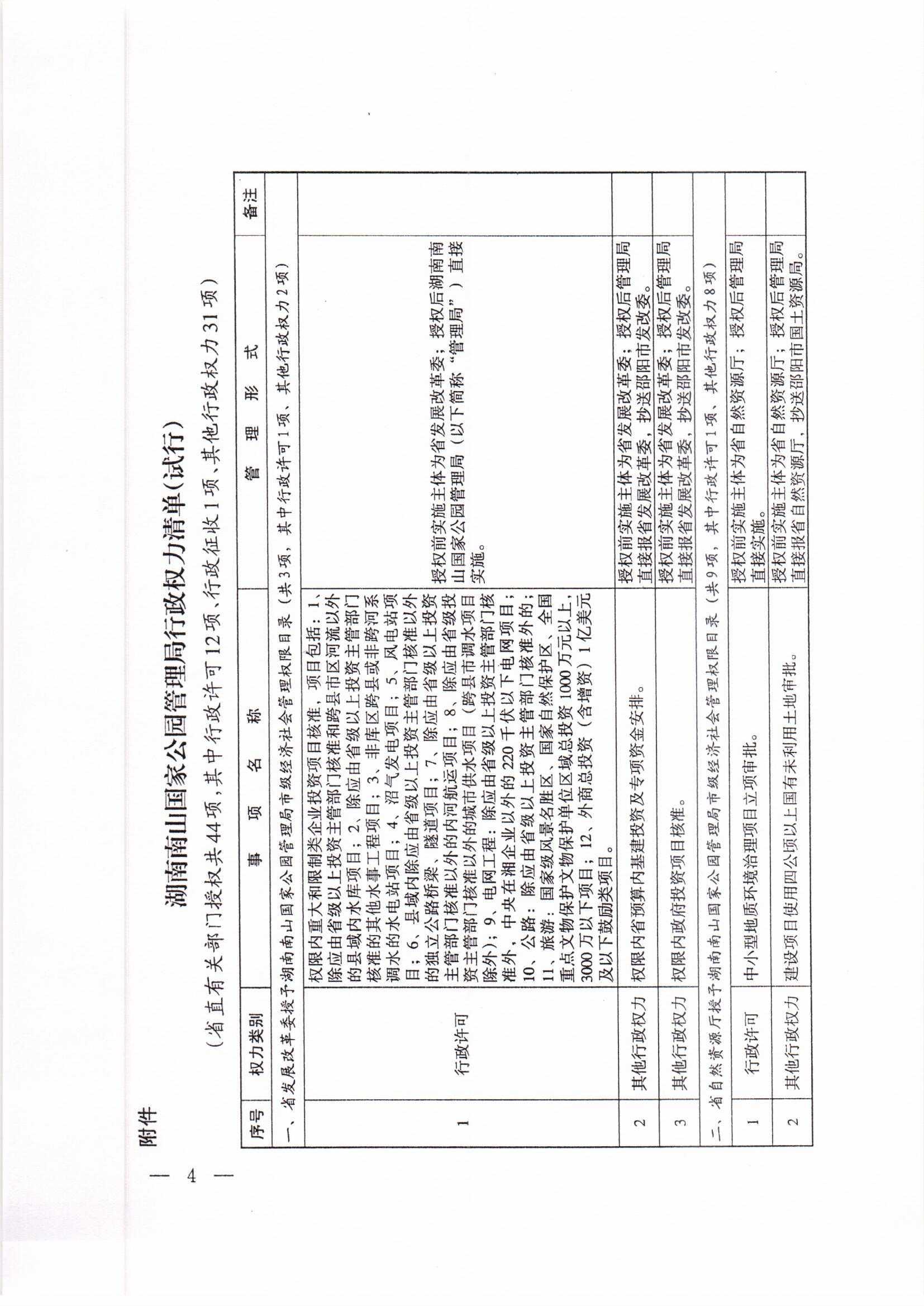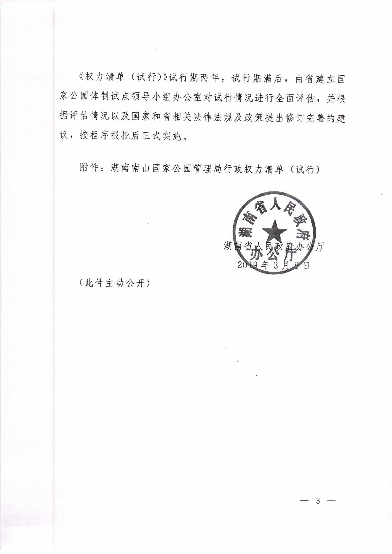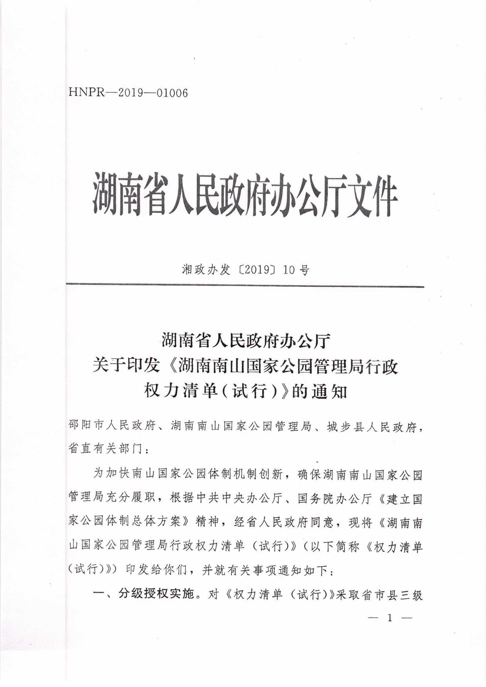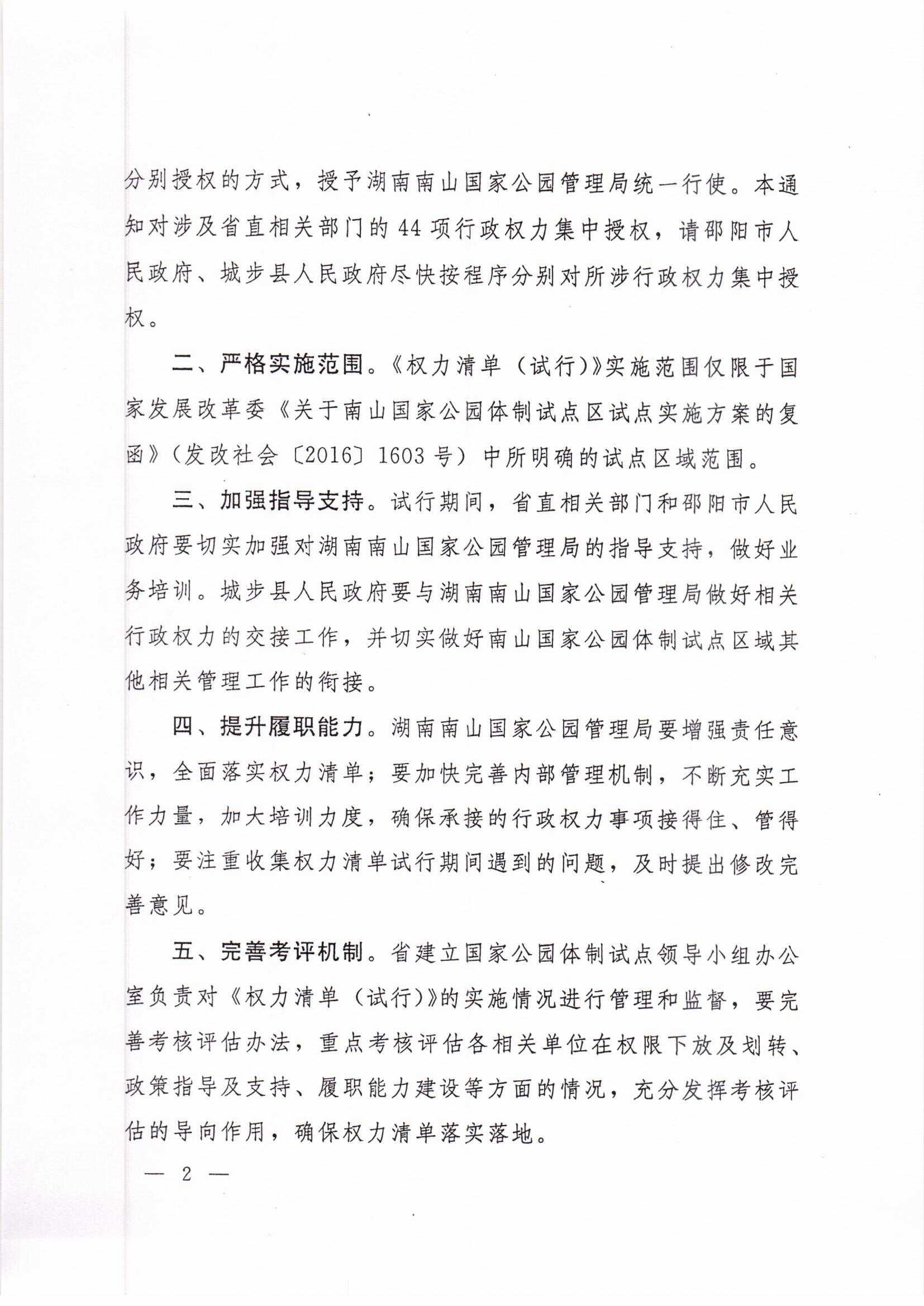 关于印发《湖南南山国家公园管理局行政权力清单(试行)》的通知