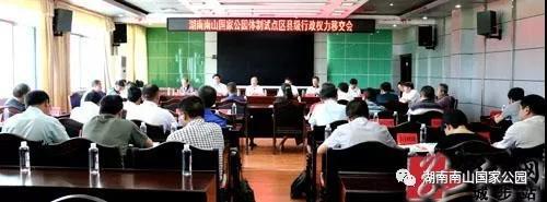 湖南南山国家公园体制试点区县级行政权力移交会议现场