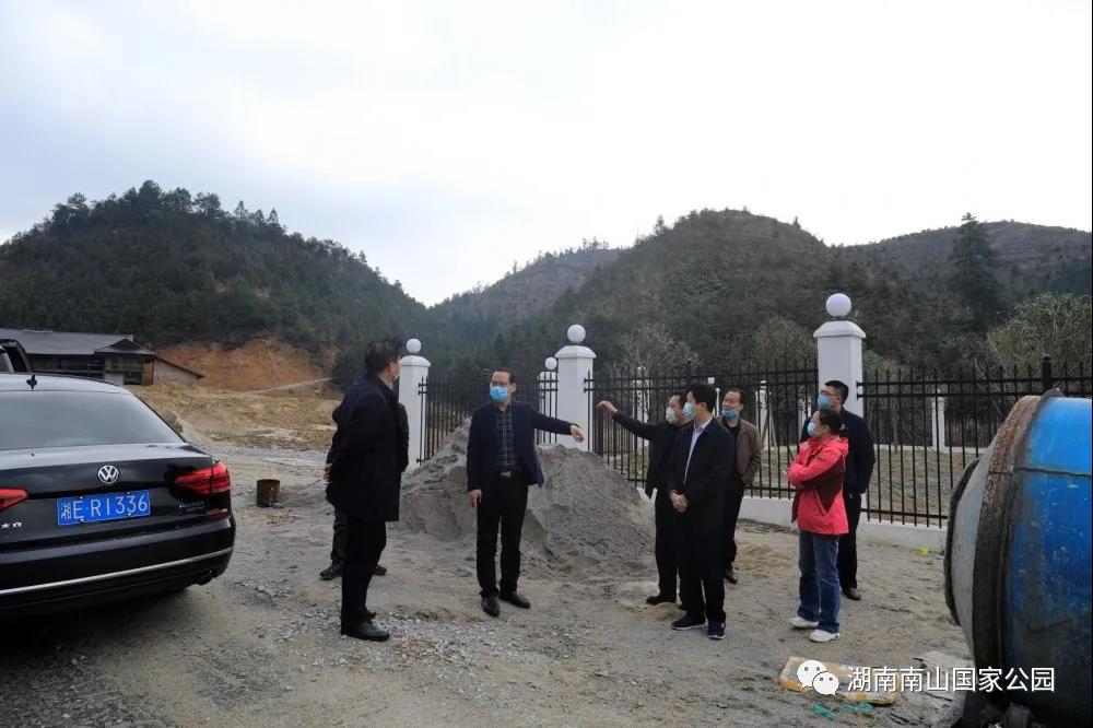 2月27日上午,湖南南山国家公园管理局党委委员、副局长周建宏,党委委员、副局长苏海,党委委员、副局长兼纪委书记黄俊玲和管理局规划处等相关处室、单位主要负责人,深入试点区重点项目建设现场,专题调度项目建设开复工情况。周建宏强调,要按照中央和省、市部署要求,在全力以赴做好疫情防控的同时,大力支持、有序推动重点项目开复工,对受疫情影响,任务进度滞后的项目,各处室、单位、相关的施工、监理部门要切实提高认识,思想上高度重视按时完成既定建设项目目标的重要性,科学调度,统筹安排,确保完成年度目标任务。