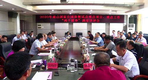 7月7日,湖南南山国家公园管理局党委书记、城步县委书记罗建南主持召开2020年南山国家公园体制试点重点项目、重点工作“两个清单”调度讲评会。湖南南山国家公园管理局党委副书记、常务副局长、城步县委副书记张戈锐,湖南南山国家公园管理局副局长苏海、黄俊玲,县领导黄兆勇、陈文华、李宪、唐承威、马忠华及各重点项目指挥部指挥长、常务副指挥长,湖南南山国家公园管理局各处室负责人和县直相关单位负责人等参加会议。