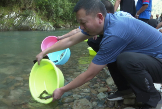 为进一步提高南山国家公园境内的生物多样性,改善公园河流水域环境,助力苗乡乡村振兴,省林业局驻白毛坪镇和平村帮扶工作队邀请张家界大鲵国家级自然保护区管理处技术人员,来到白毛坪镇勘察河流的生态环境,最终确定了河水清澈、水质优良的和平、小寨、黄伞、坳岭4个村的河流为放流水域。