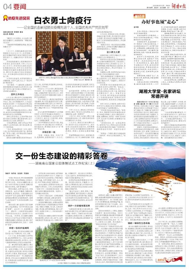 建设全面小康、追求伟大复兴的新时代,向这里抛出一份不寻常的生态建设“问卷”。2016年7月,全国首批10个之一、我省唯一1处的湖南南山国家公园体制试点区设立,总面积635.94平方公里。4年多来,南山国家公园体制试点以习近平生态文明思想为指引,积极探索国家公园创建之路,精心呵护湘桂边界这颗绿色明珠,交出了一份精彩“答卷”。