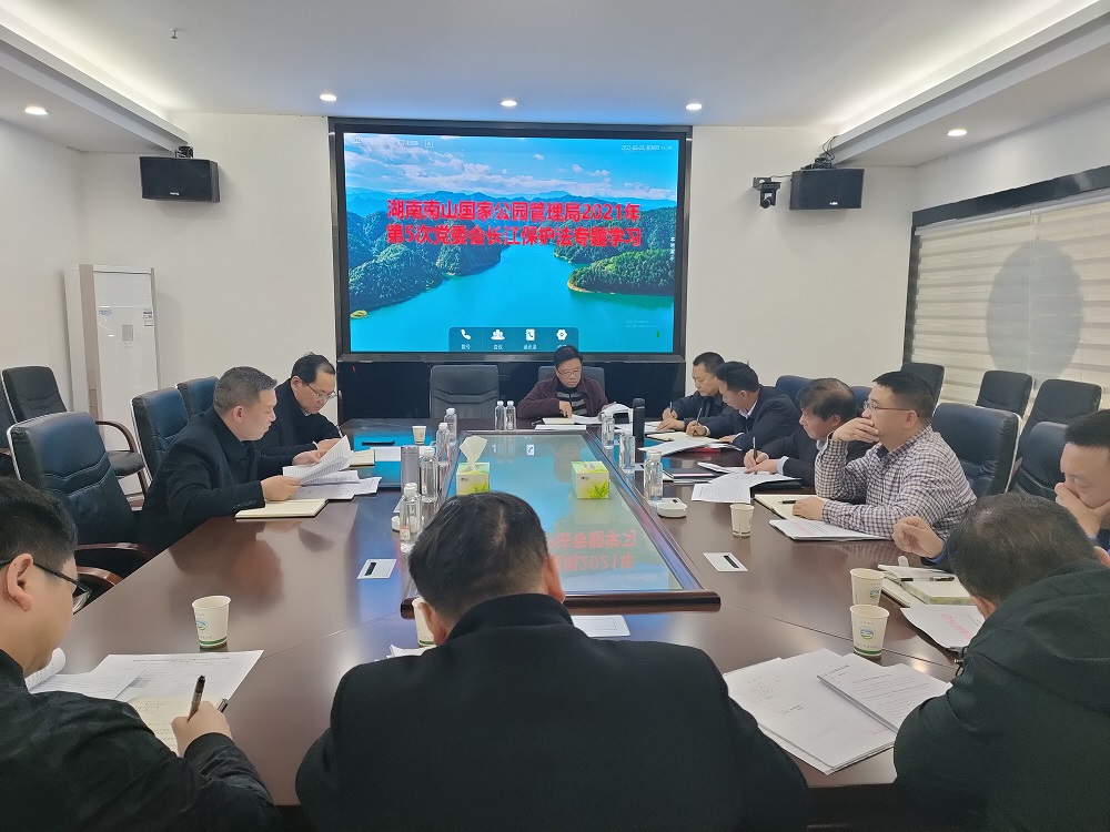 3月25日,湖南南山国家公园管理局党委召开扩大会议,深入学习《长江保护法》。管理局党委委员、常务副局长、城步县委副书记张戈锐对学习贯彻《长江保护法》进行解读和提出要求,局党委班子成员、局属各处室(单位)负责人参加学习。