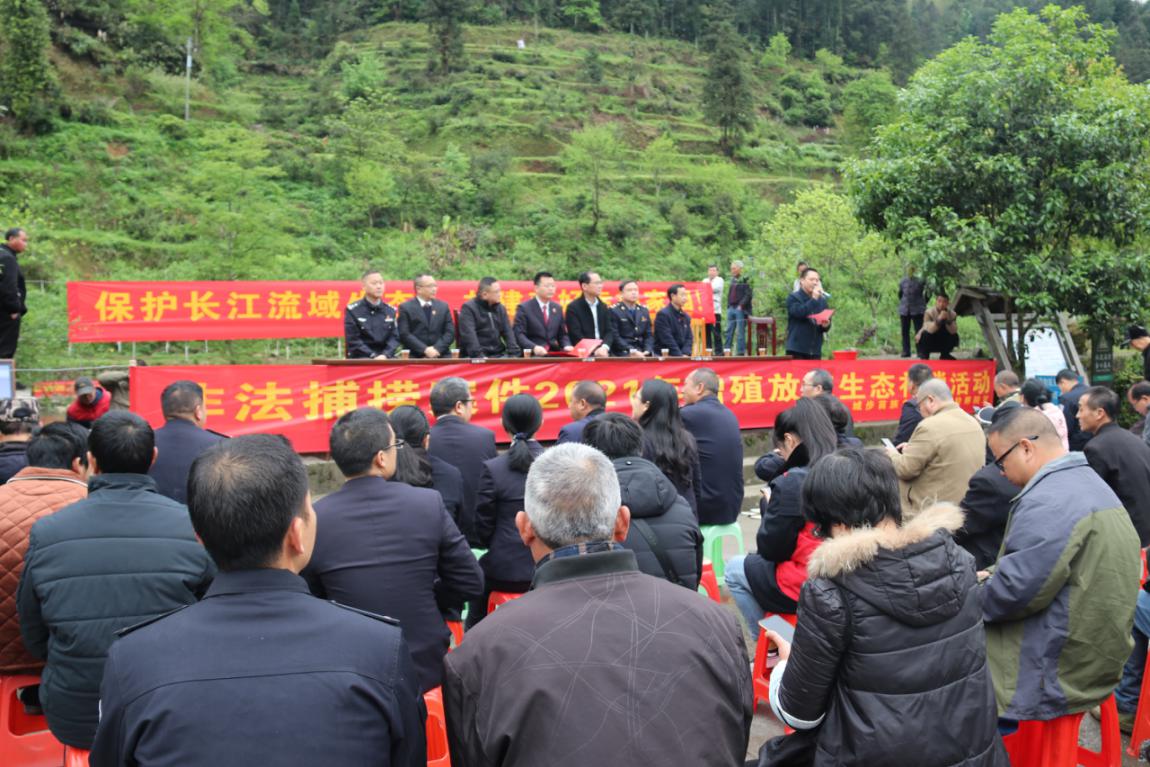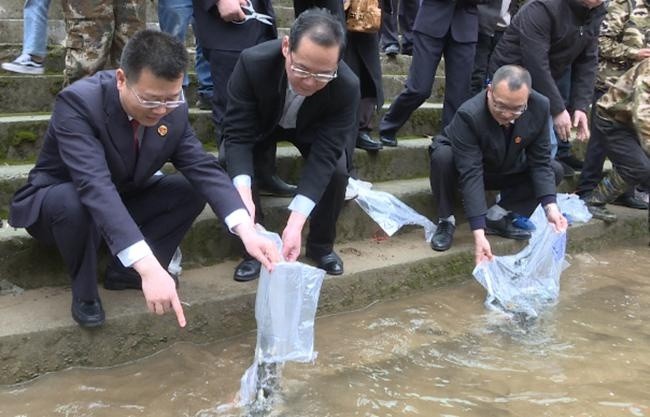 4月8日,为提高《长江保护法》的社会知晓度,让长江大保护、十年禁渔的理念更加深入人心,湖南南山国家公园管理局携手城步检察院在公园内两江峡谷及白云湖片区开展《长江保护法》宣传暨增殖放流生态修复活动,既为广大群众深入浅出地讲解、宣传相关法律条款,同时以生态修复补偿机制引入生态环境保护,对非法捕捞该水域渔业资源和生态环境造成的破坏进行修复。