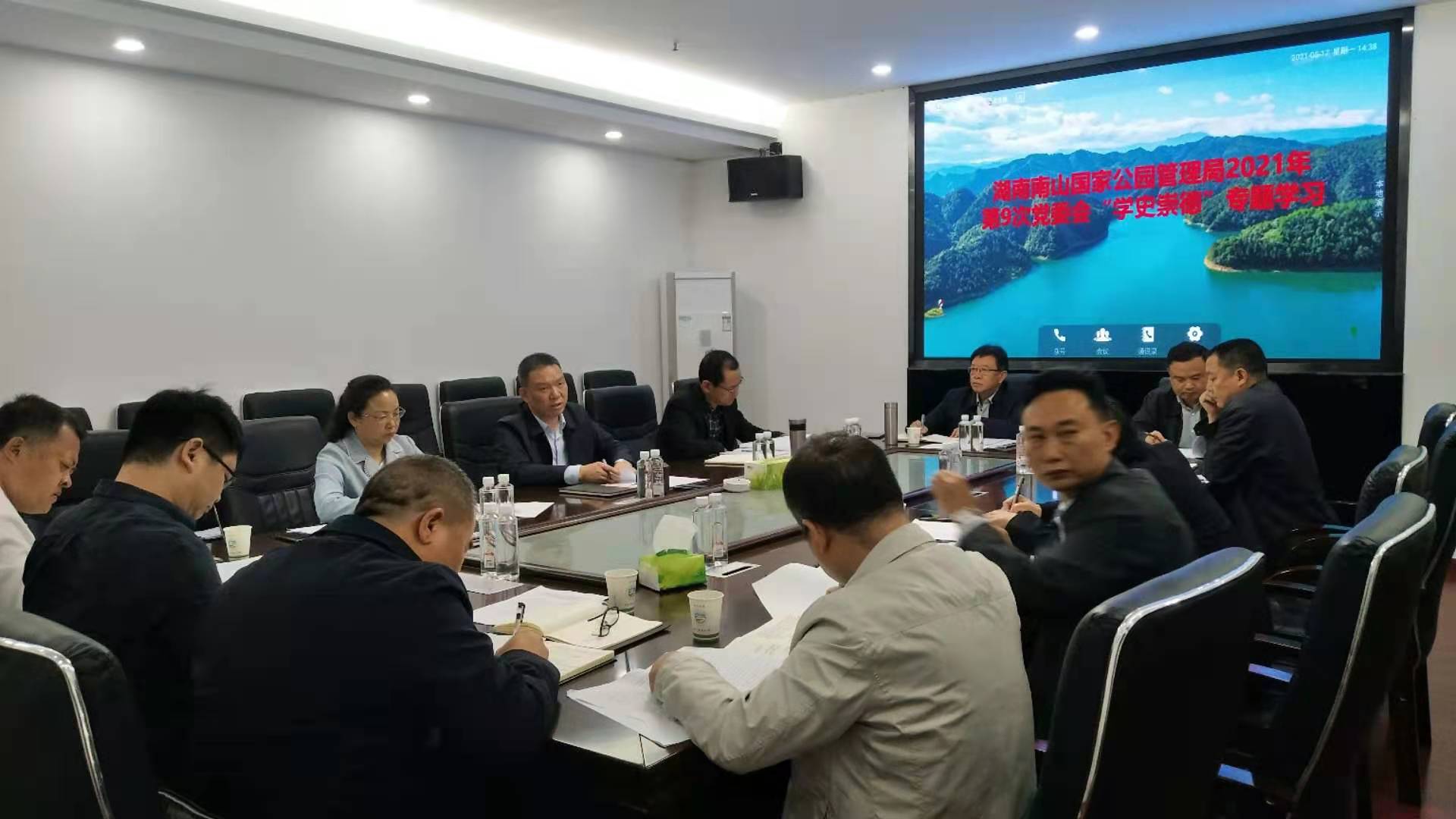5月17日,湖南南山国家公园管理局党委组织开展“学史崇德”第三次专题集中学习研讨。会议由局党委副书记、常务副局长、城步县委副书记张戈锐主持,各处室(单位)负责人参加学习研讨与交流。