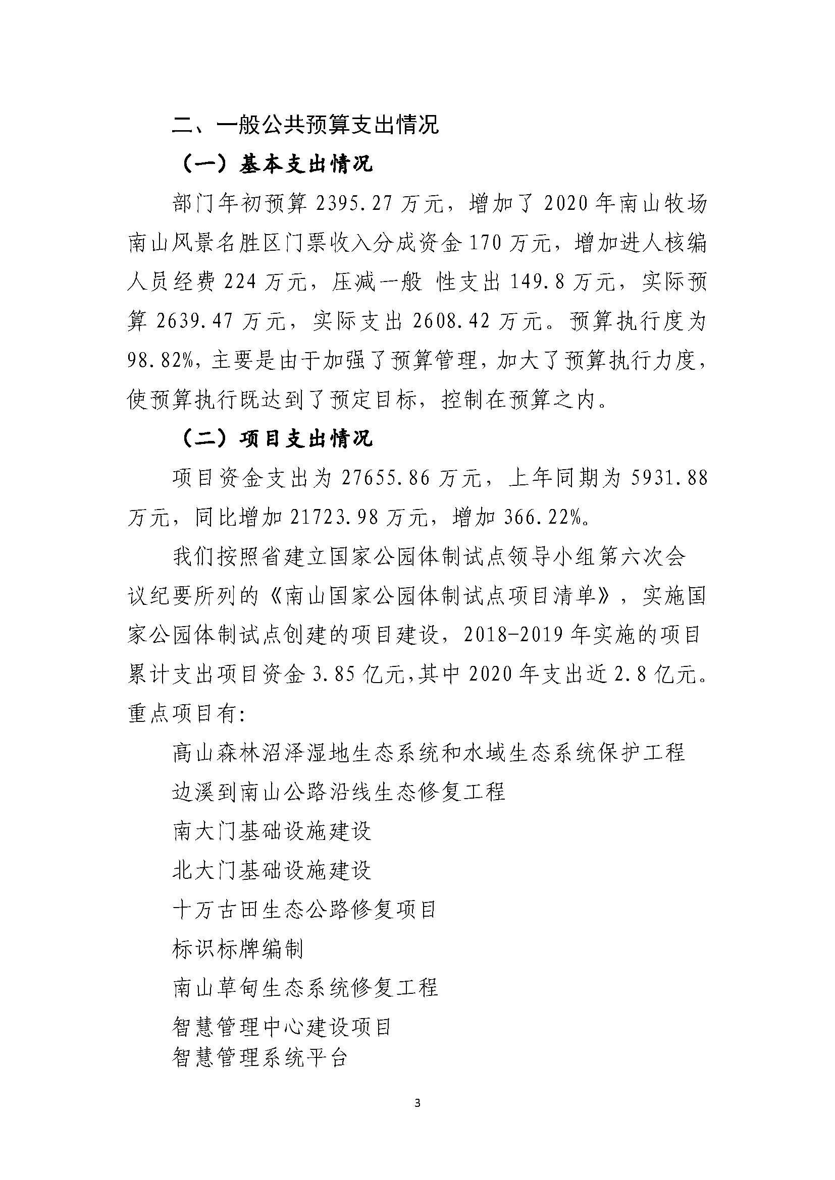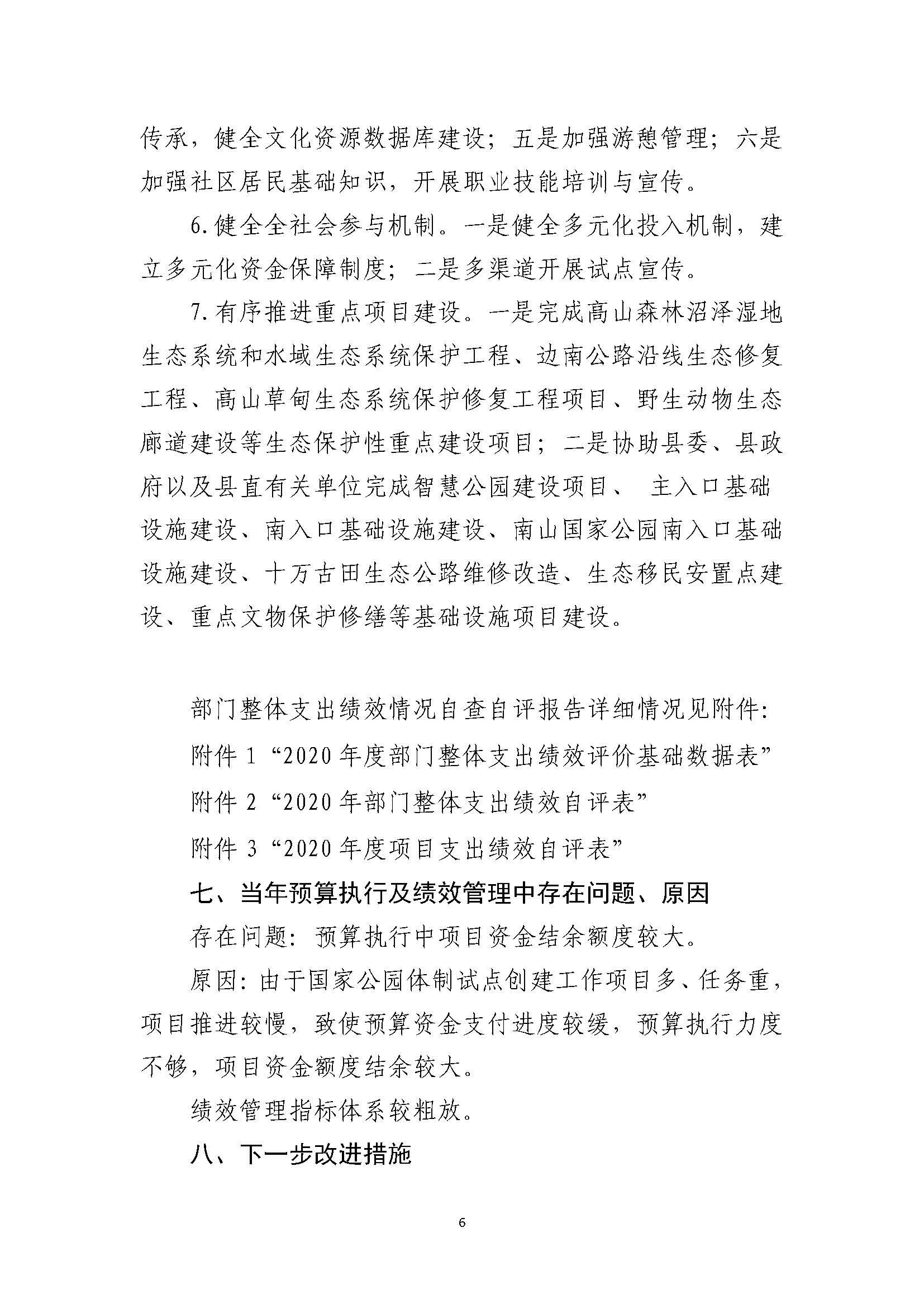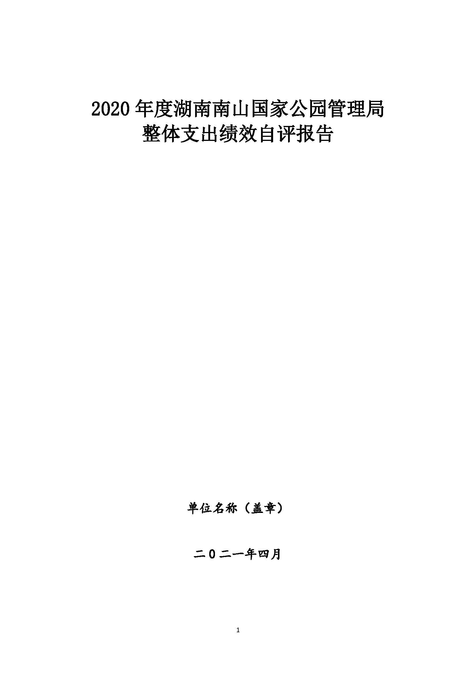 湖南南山国家公园管理局2020年部门整体支出绩效自评报告
