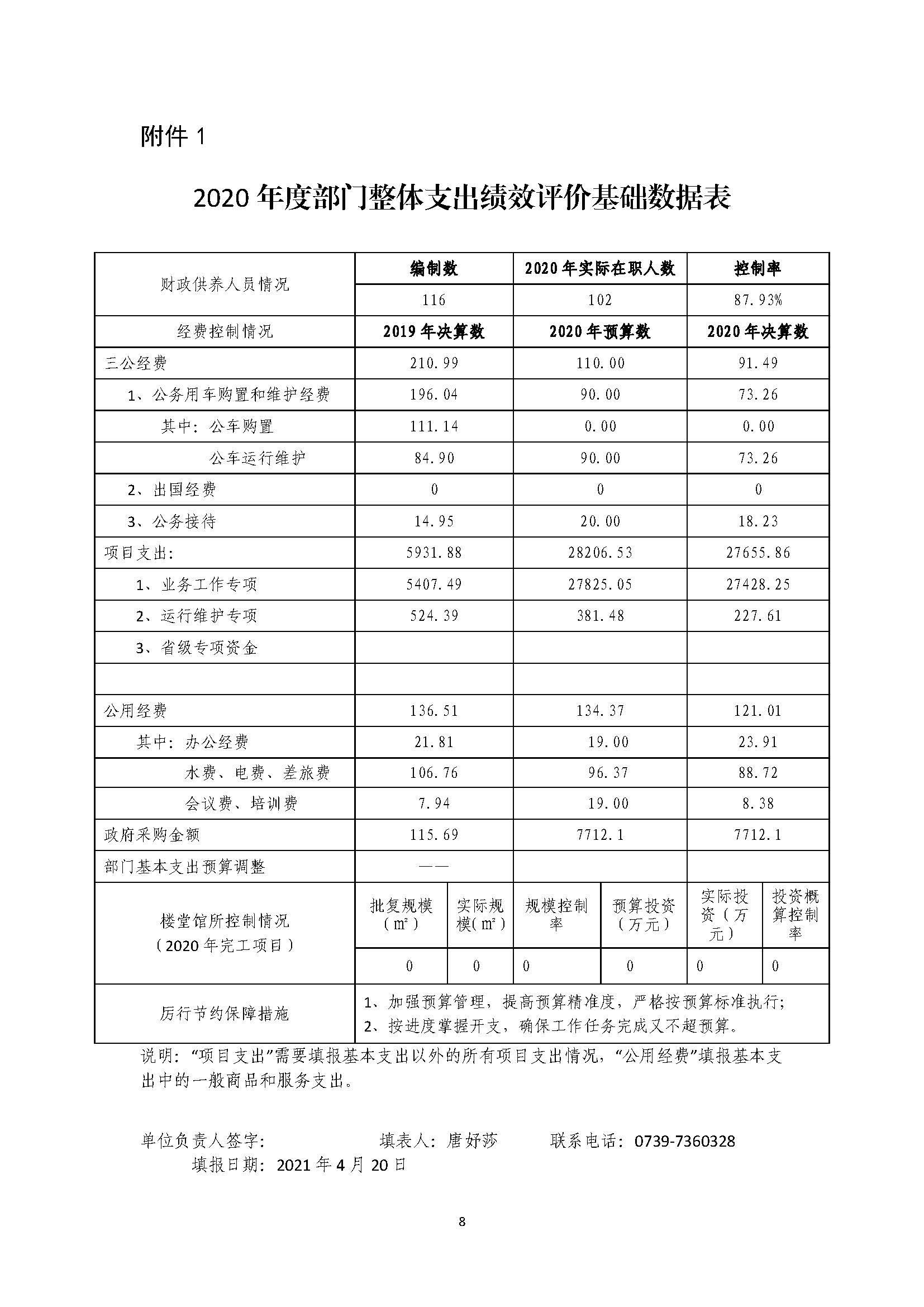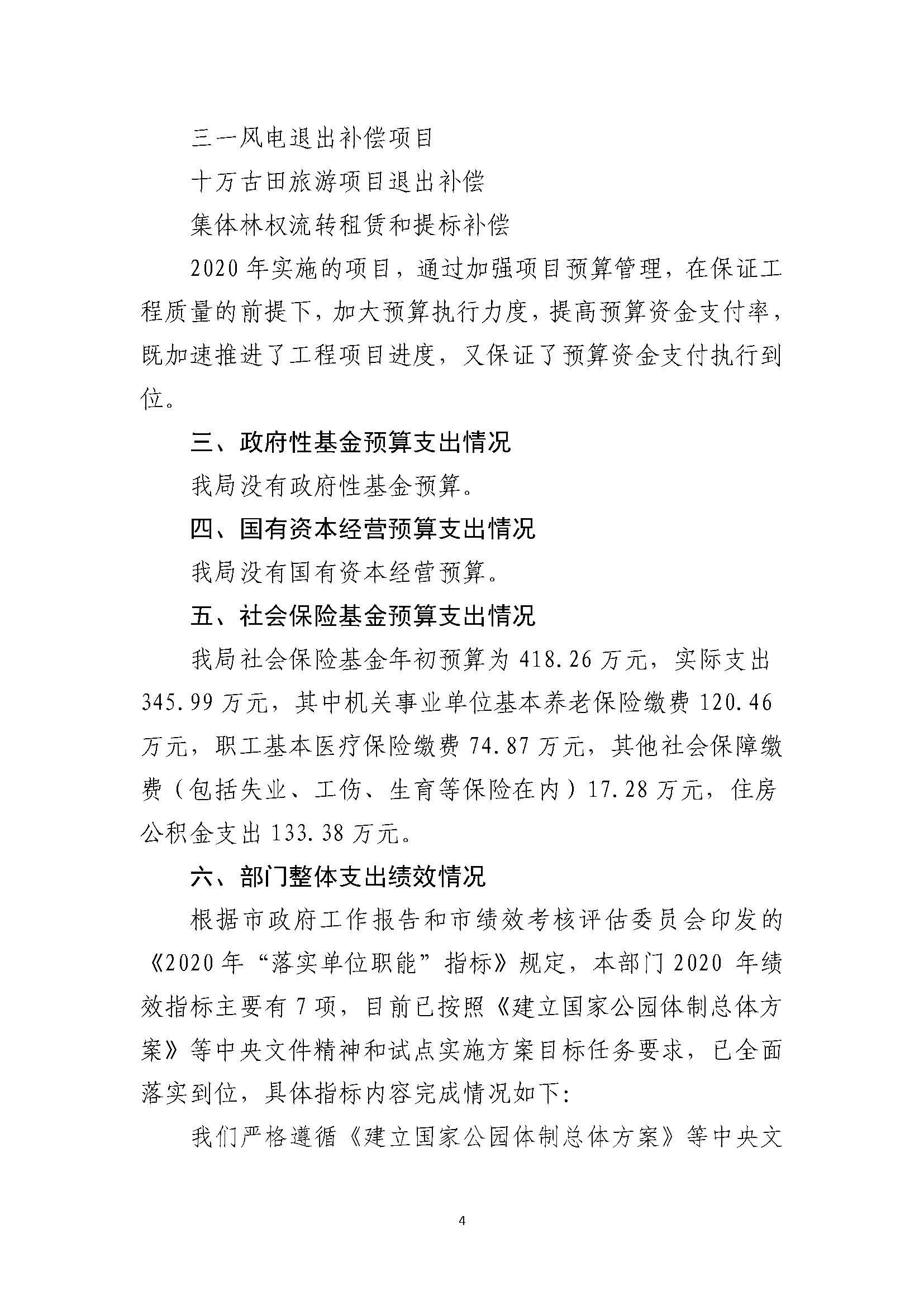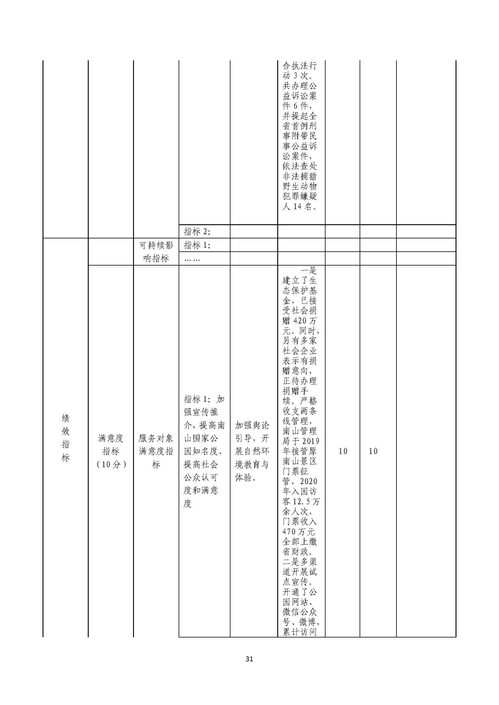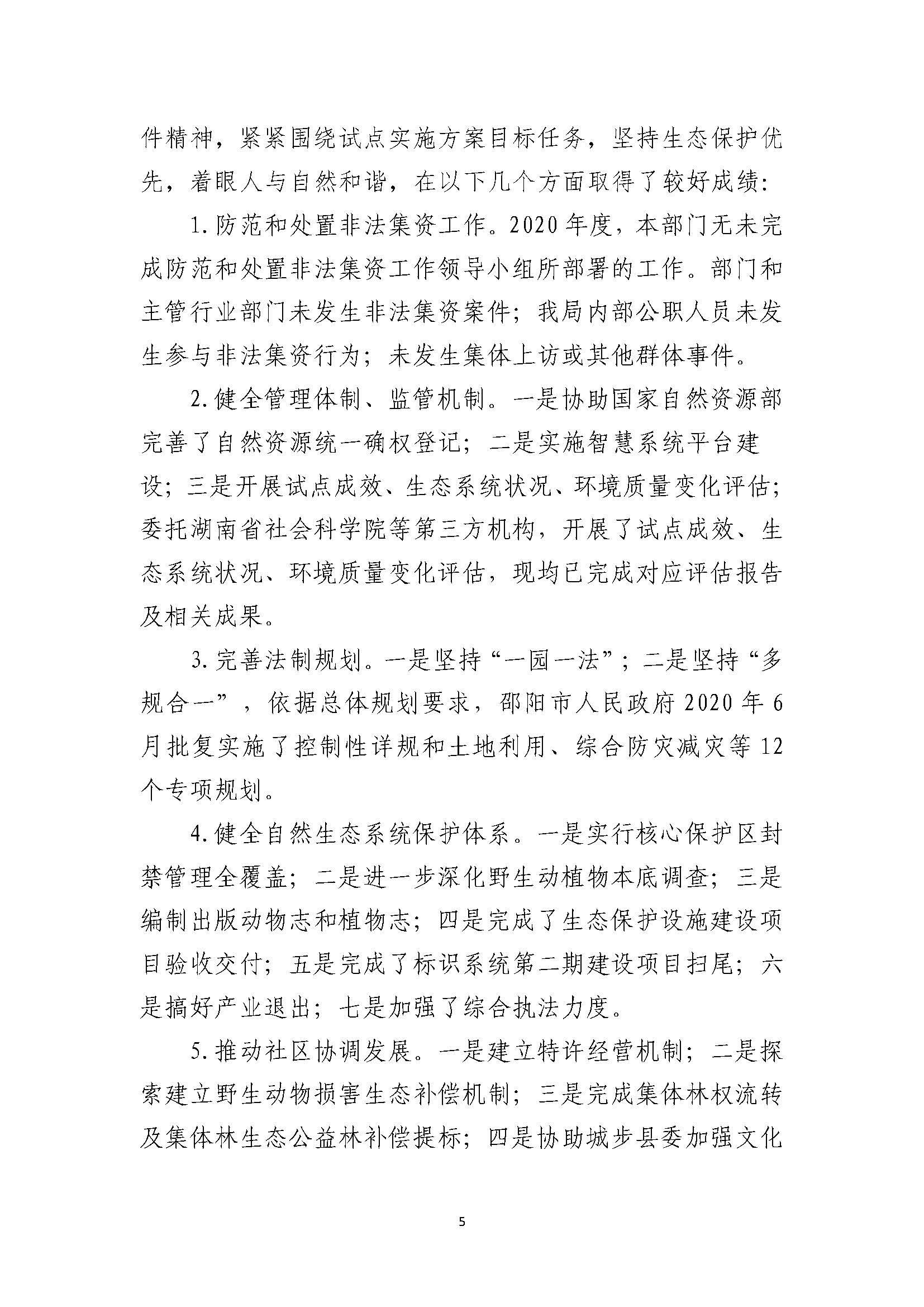 湖南南山国家公园管理局2020年部门整体支出绩效自评报告