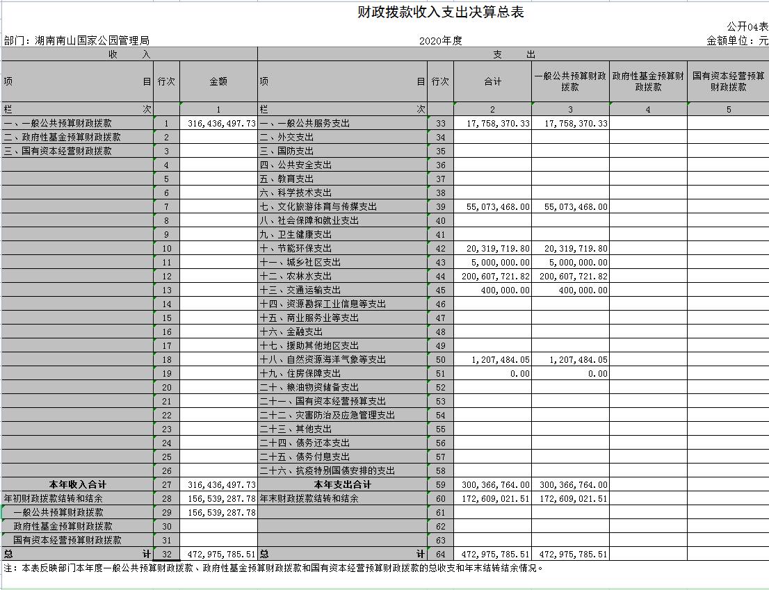 第三部分 湖南南山国家公园管理局2020年度部门决算情况说明