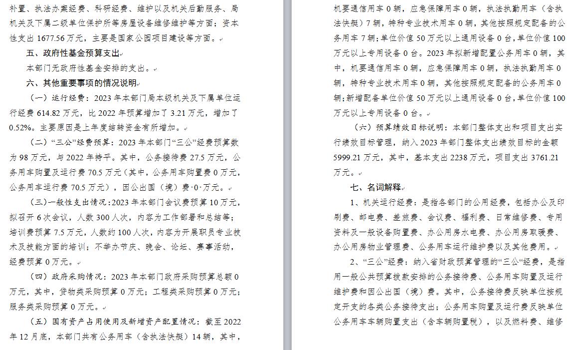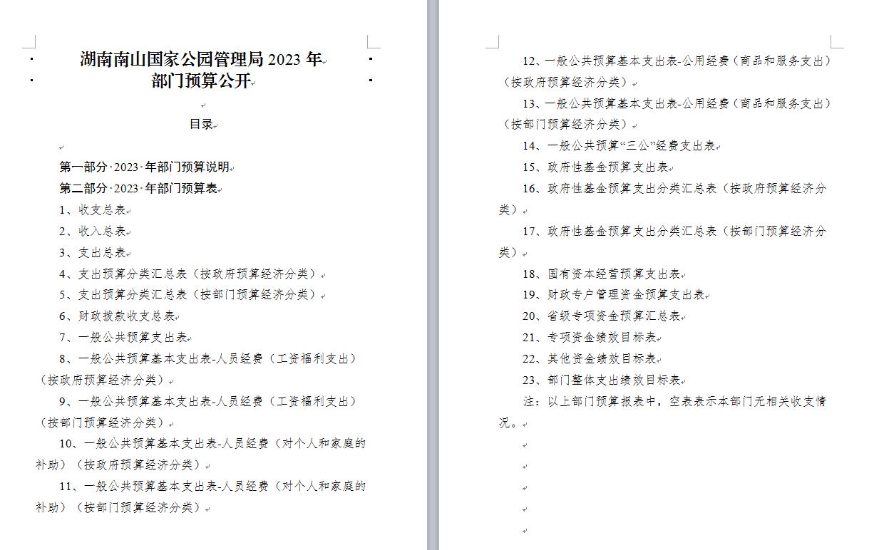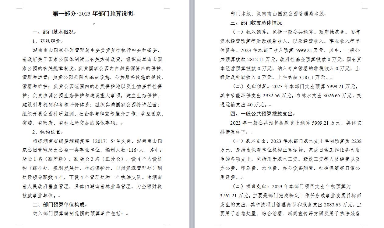 (表格部分)2023年湖南南山国家公园管理局省级部门预算公开表
