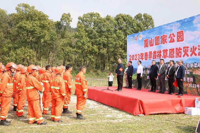 3月15日,南山国家公园2023年春季森林草原防灭火培训演练活动在新宁崀山举行。湖南省林业局党组成员、南山国家公园管理局党委书记、局长王明旭出席,邵阳市人民政府副秘书长彭丁峰,新宁县人民政府县长彭洪兵,南山国家公园管理局党委委员、副局长兼纪委书记戴求兵,新宁县委常委、崀山风景名胜区管理局党委书记、局长李爱铭,新宁县委常委、副县长邓昌海,邵阳市应急管理局、邵阳市林业局等单位相关负责人,以及南山国家公园各自然保护地、新宁县共8支应急队伍220余人参加活动。