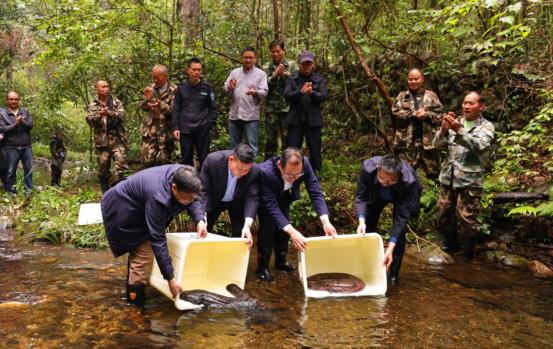 南山国家公园建设始终坚持“生态保护第一、国家代表性和全民公益性”理念,在这里开展大鲵野外种群重建,将遗传背景清晰的华南大鲵野放到原生分布地,可以帮助恢复华南大鲵野生种群的地理分布与生存范围,降低人工养殖群体遗传同质化对整个华南大鲵构成的威胁。同时对正向调控南山国家公园水生食物链构成,修复水域及其沿岸生态系统,以及区域生态重建起到重要作用。