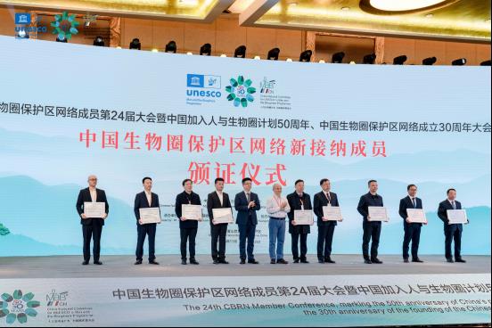 会上,中华人民共和国人与生物圈国家委员会正式宣布南山国家公园等9家单位纳入“中国生物圈保护区网络”(CBRN),张亚平主席为新纳入单位颁发了“中国生物圈保护区网络”成员证书。