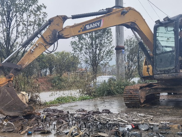 集中销毁现场,随着挖掘机的轰鸣声,240余副收缴的各类捕兽工具瞬间变成了废铁。