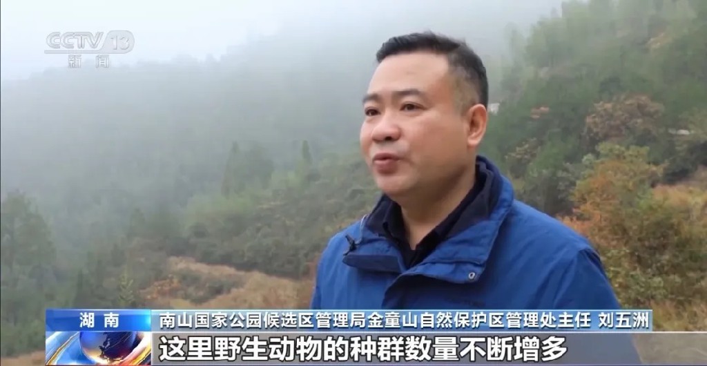 南山国家公园候选区管理局金童山自然保护区管理处主任 刘五洲:随着生态环境持续向好,这里野生动物的种群数量不断增多,活动越来越频繁,一些多年未见的国家级保护动物,如今是频频出镜。