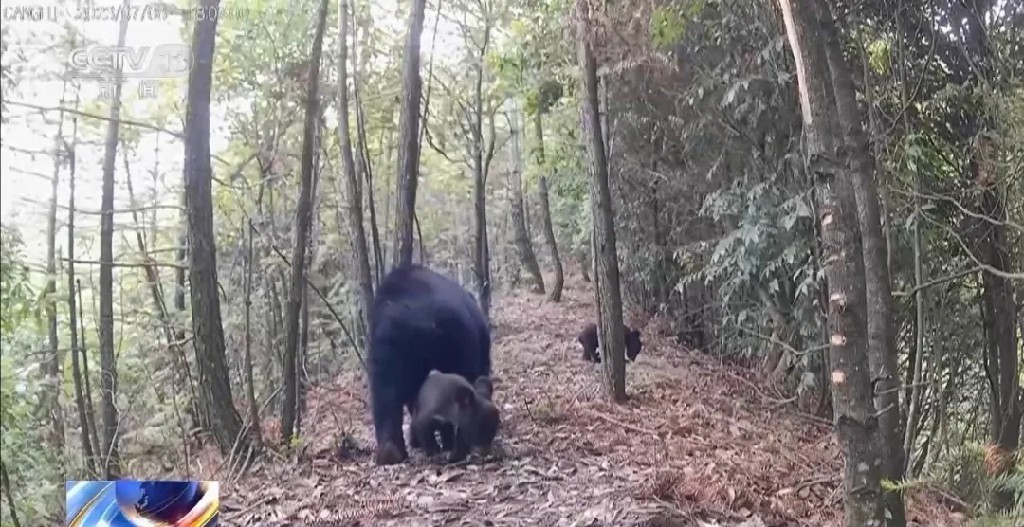 园区内,工作人员的红外相机还拍到了一只成年黑熊摇头晃脑地带着两只幼崽遛弯觅食,画面十分有趣。近年来,随着公园范围内生态保护力度的不断加大,植被覆盖率高达90%以上,园区内人类活动干扰少,食源丰富,为黑熊种群的繁衍生息创造了良好环境。