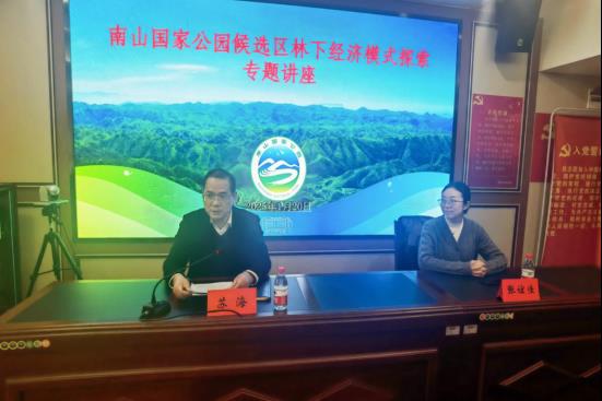 会议邀请到国家林业和草原局产业发展规划院生态建设处副处长、教授级高级工程师张谊佳进行主讲,详细介绍了当前国家林下经济发展的现状、案例以及最新政策,深入浅出地探讨了南山国家公园林下经济模式发展方向,并从项目争取资金渠道提出了合理的意见建议,进一步拓宽了参会人员的视野,对林下经济的发展也有了全新的认识与思考。