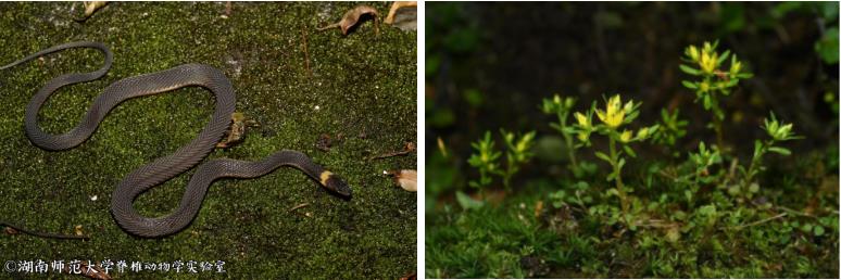 (左图为发现新物种-南山脊蛇;右图为湖南省新纪录种-细小景天)