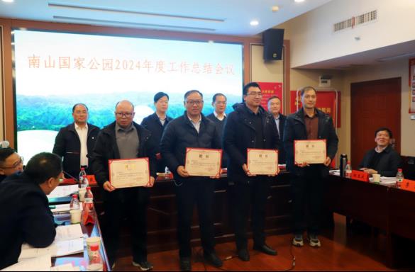 会议表彰了2024年南山国家公园建设重点工作先进单位,宣布了2024年度南山国家公园候选区创建10件大事,宣读了《关于成立湖南南山国家公园管理局技术咨询委员会的通知》并向委员会成员颁发了聘任书。