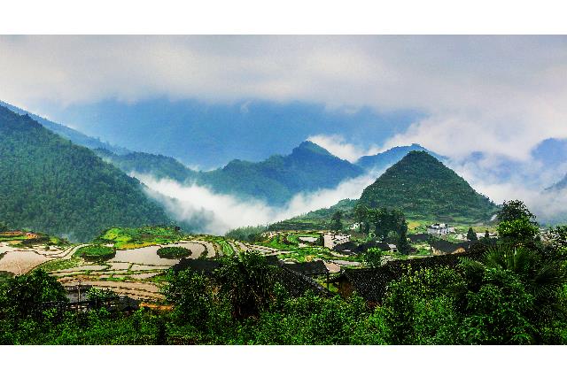 嗟乎!舜皇之韵,三色交融。古色凝神,溯圣贤之遗范,舜皇岩前,德风犹沐湘楚;红色淬魂,继星火之精诚,老山界上,浩气长贯苍穹;绿色养性,循大道之生生,紫云山中,蝶谷氧泉自蕴天机。石镌禹功,木纳春秋,山水无言自成史;德昭日月,心通今古,乾坤有象总关情。登临绝顶,瞰千峰竞秀,万象归心。今辟国家公园,护绿水青山,承古开今,三色辉映,万类谐荣,此诚人间之化境,华夏之凤麟!