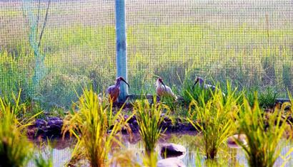 “鱼稻轮作”水田边的朱鹮 摄影 罗先武
