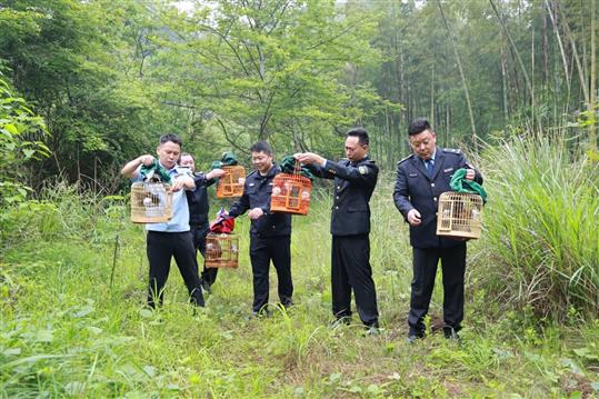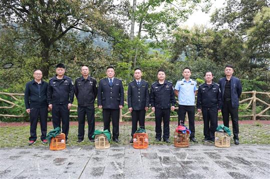 4月30日,湖南南山国家公园管理局综合执法支队联合城步苗族自治县森林公安局,前往南山国家公园候选区境内,集中放生从不法狩猎分子手中收缴的5只国家二级重点保护野生动物画眉鸟。